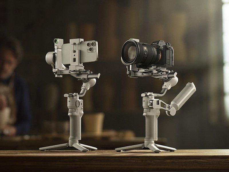 重量はわずか890g (2ポンド)ながら、最大2kg(4.4ポンド)の積載能力を誇ります。主要なミラーレスカメラやレンズの組み合わせに対応し、[6] Sony A7シリーズのカメラに24-70mm F2.8 GM IIレンズ、DJI Micシリーズのマイクレシーバー[5] と組み合わせても安定した撮影が可能です。また、高トルクモーターを採用しており、以下の推奨セットアップで最大焦点距離までズームしても、バランス調整なしで安定したフォローショットが可能です。