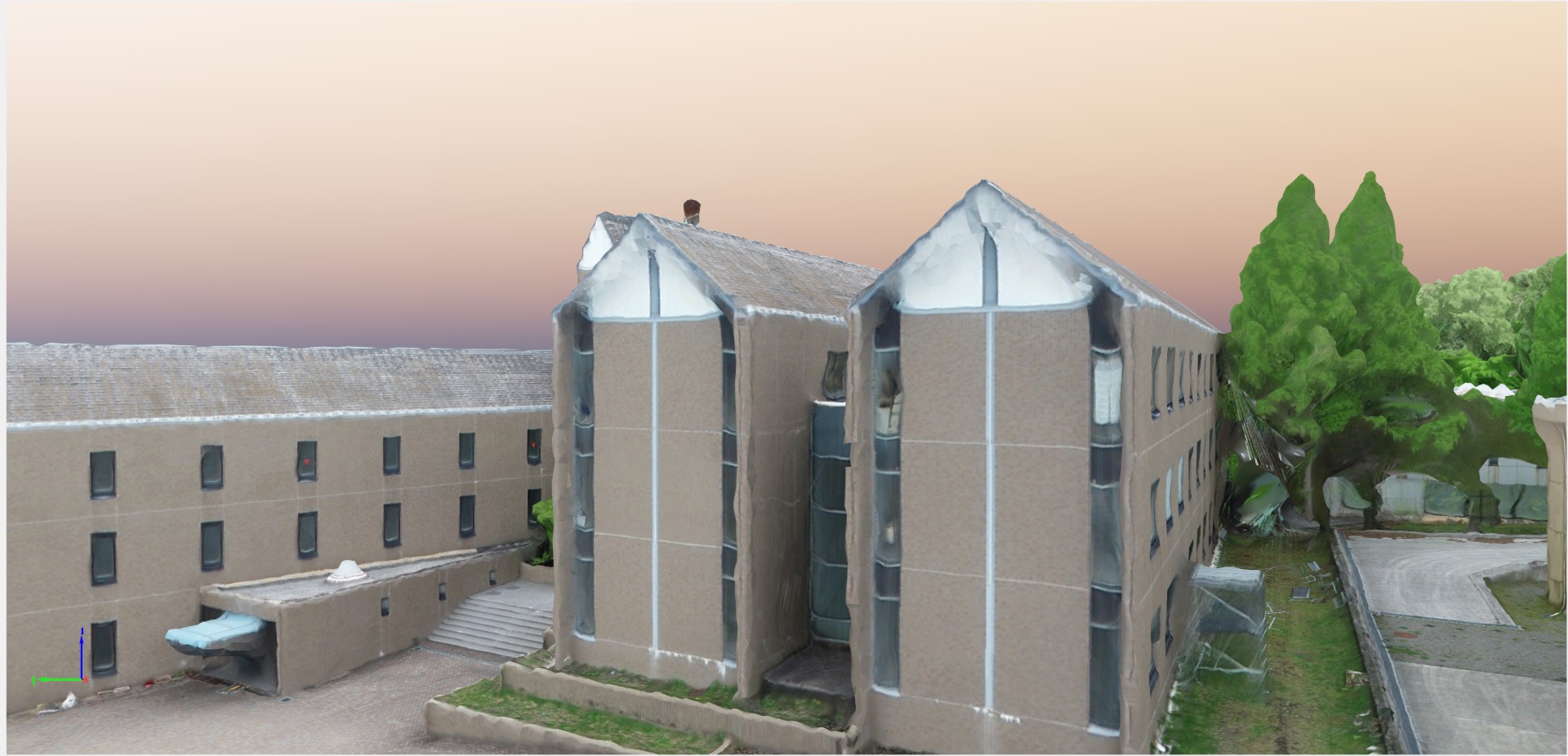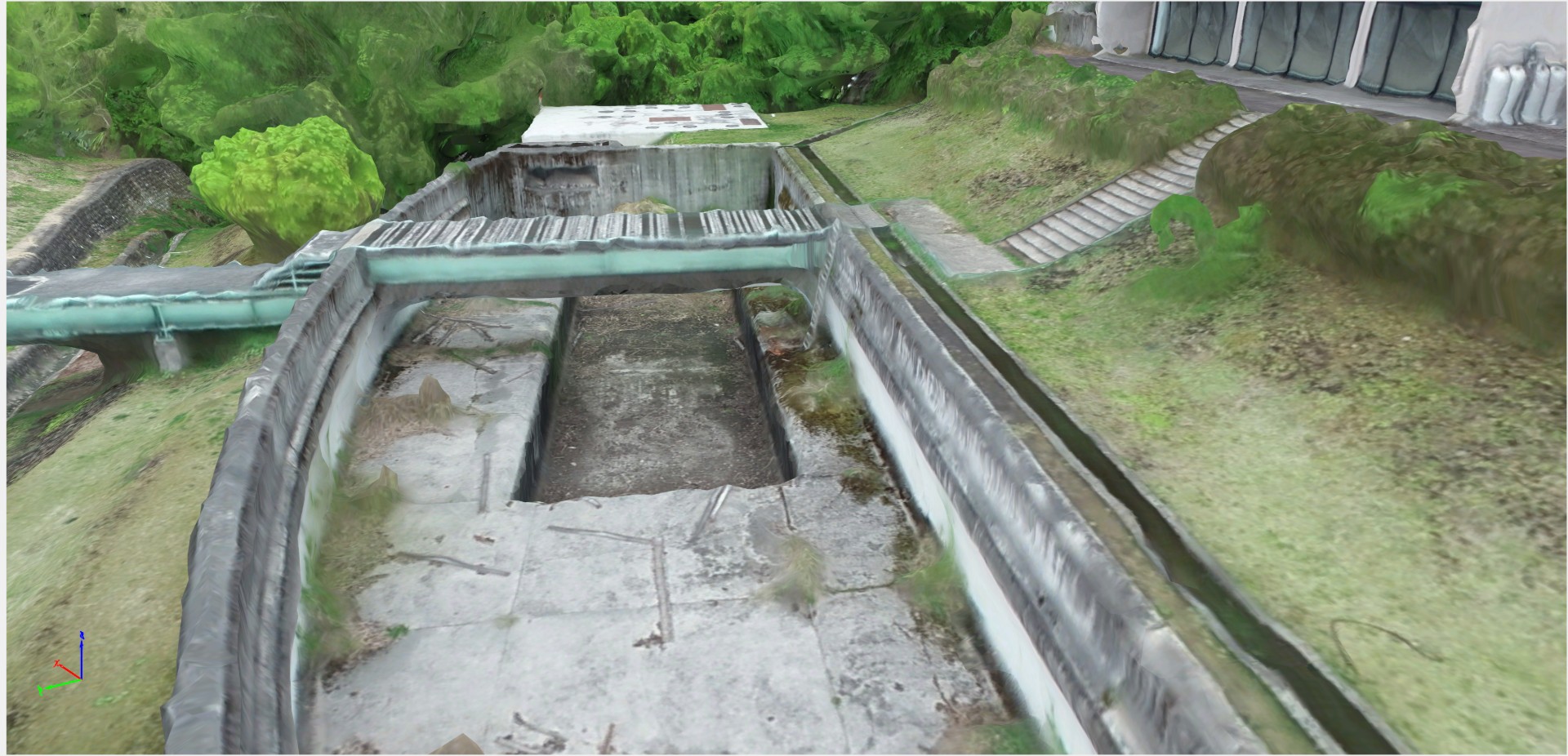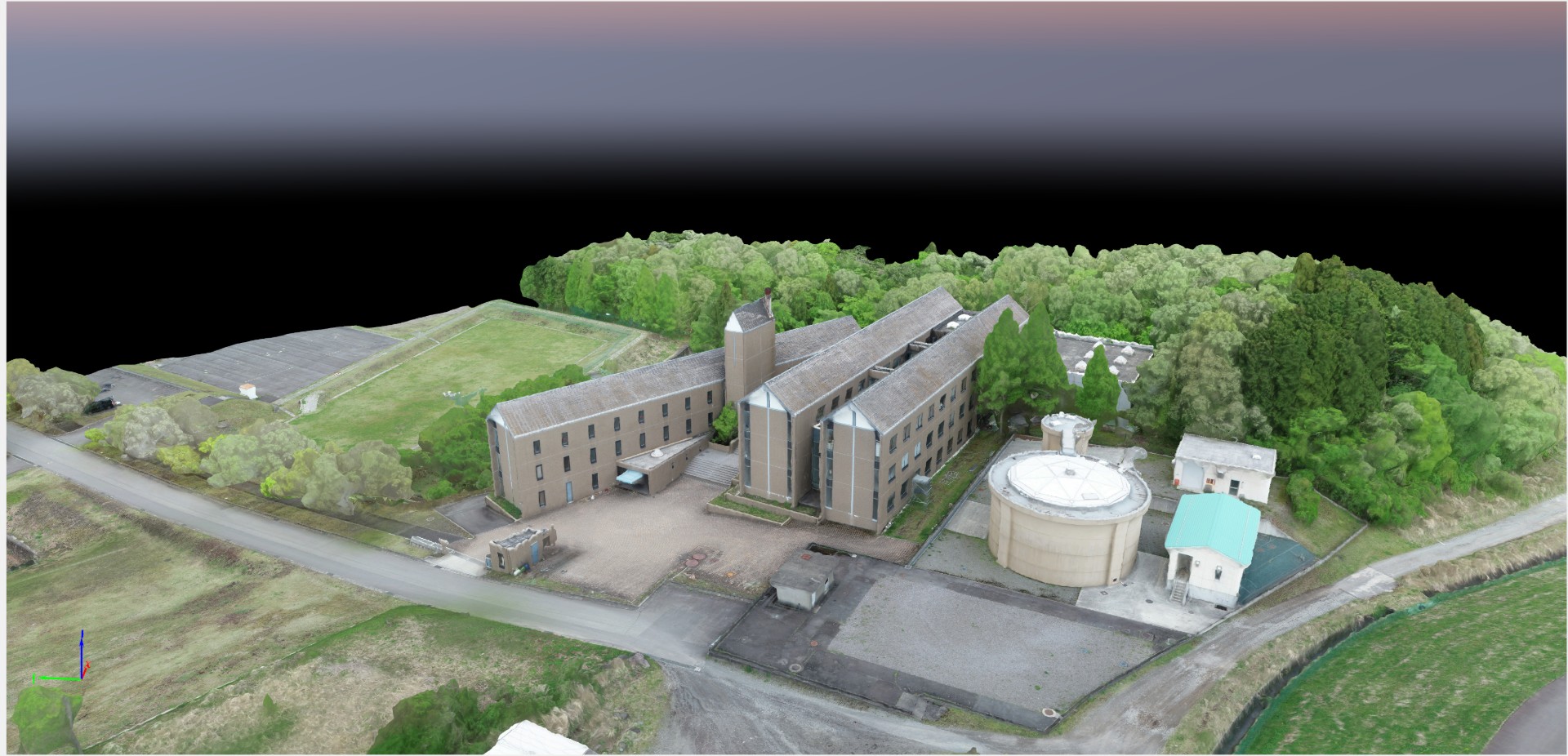※ Pix4D の機能で点群化処理したものに、三角メッシュを張り付けております。