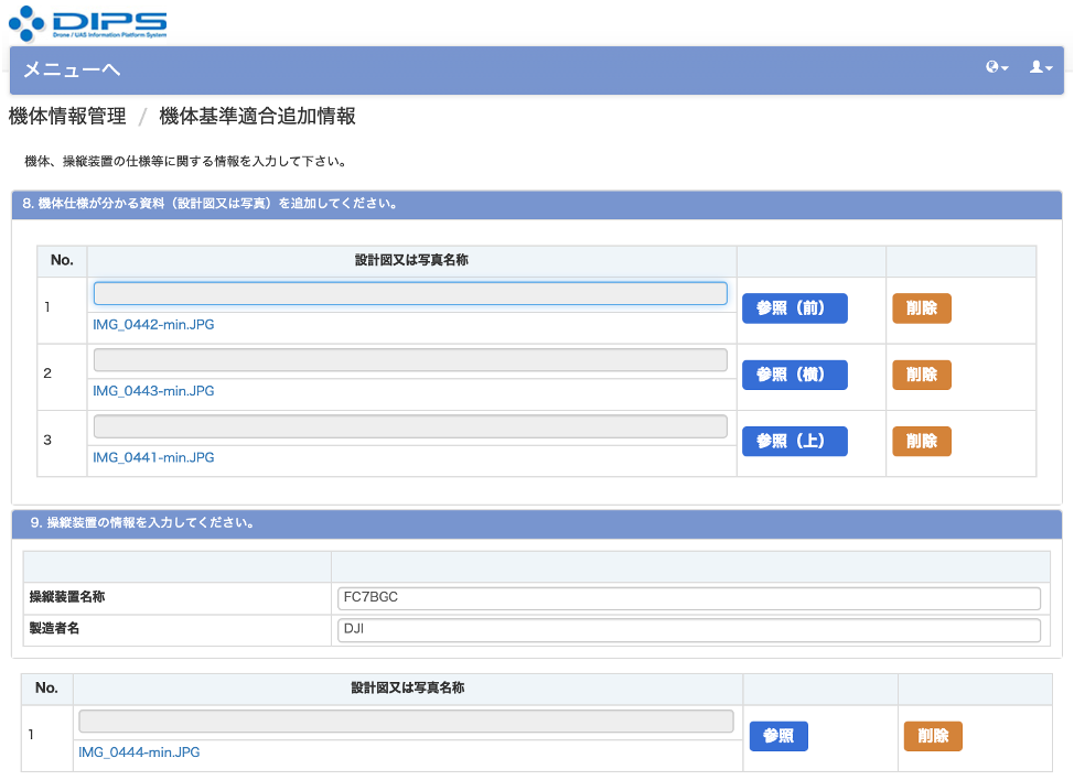 [4. 機体一般~]、[5. 遠隔操作の機体~]