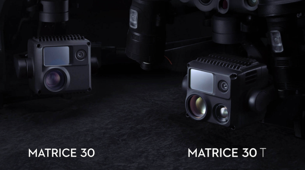 M30シリーズには、ワイドカメラ・ズームカメラ・レーザー距離計を搭載した「Matrice 30」と、さらにそこに赤外線カメラが一体型となった「Matrice 30T」の2種類のモデルがあり、Matirce 300 RTK で使用できる H20シリーズと同様の構成です。