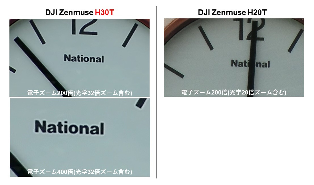Zenmuse H30T のズーム性能を動画で見ていただきましたが、H20T で撮影した画像との比較がこちらです。