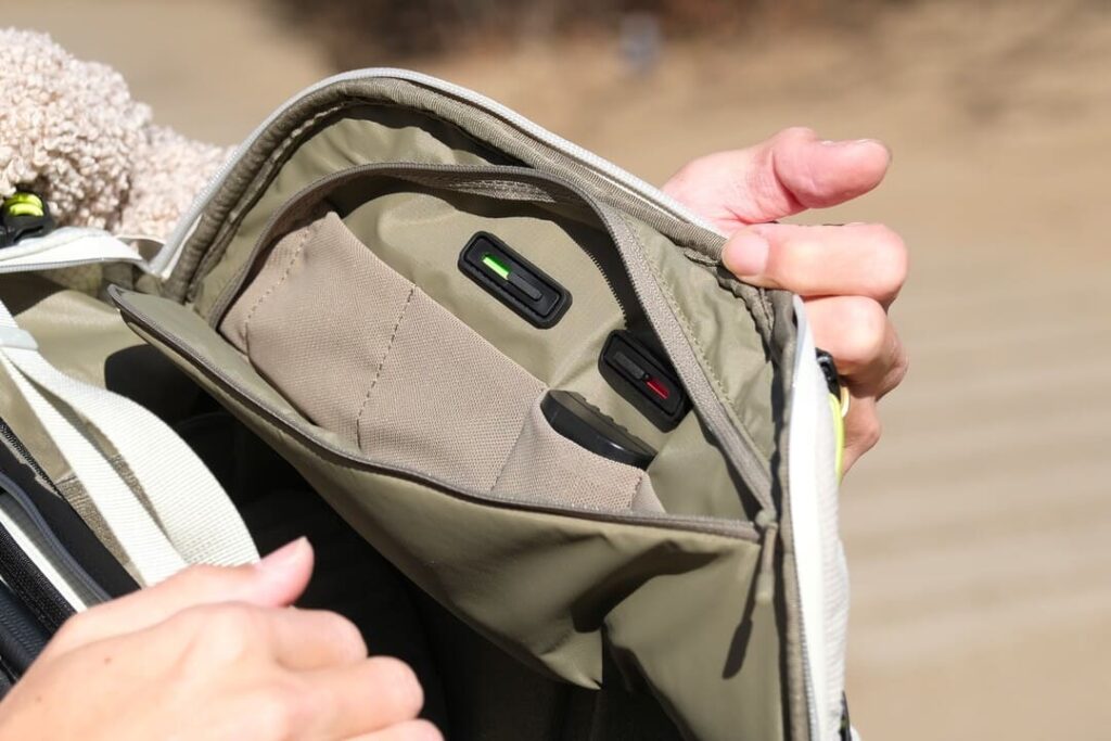 バッテリーポーチはバッテリーや小物を整理して収納できるだけでなく、バッテリー残量を一目で確認できるマーカー付きです。現場での無駄な動きを減らし、撮影の流れをスムーズに保ちます。