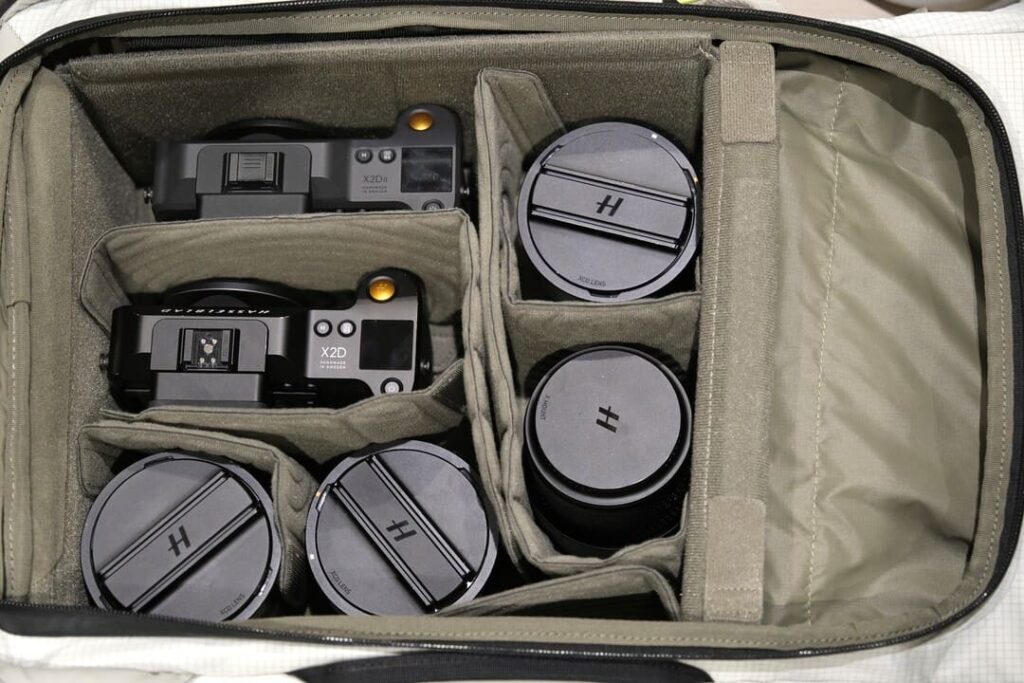 メイン収納スペースには可動式の仕切りを搭載しています。カメラ・レンズ・ドローン・アクセサリー類を撮影スタイルにあわせて自由にレイアウトできます。