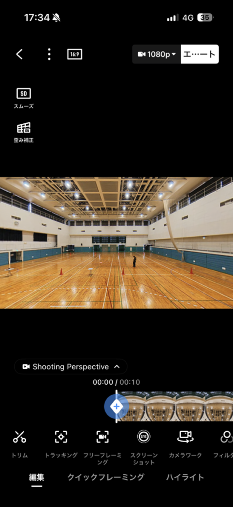 実際の編集の模様もお見せします。編集点を押して見せたいシーンを選択し、360°映像の中から表示したい方向を指定するだけで編集が可能です。