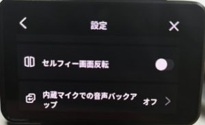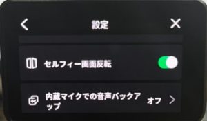セルフィー機能使用時に、ライブビュー画面上で文字などが反転して映し出されています。