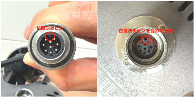 コネクタを機器に接続する際は、位置決めピンで位置を合わせてください。