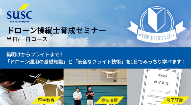SUSC 無人航空機操縦士は、初心者向けの講習と技能資格認定試験がセットになった、お得な資格試験です。