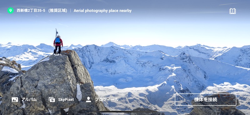 Mavic Mini を操縦するには、まずお持ちのスマートフォンまたはタブレットに DJI Fly アプリをダウンロードします。従来機種で使用していたアプリと比べて、設定項目などがシンプルになっていますので、初心者にも使いやすいアプリケーションになっているかと思います。