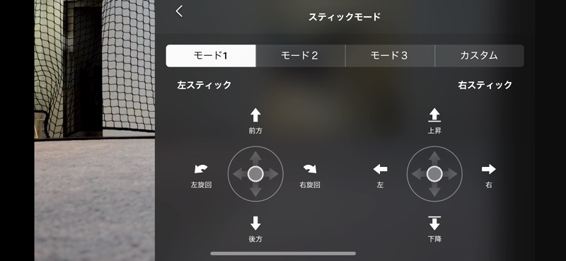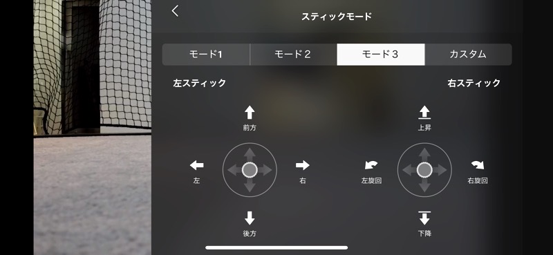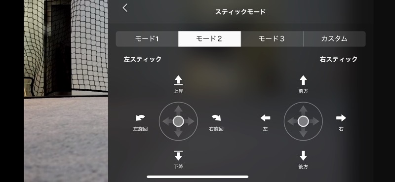 ドローンの操縦方法にはいくつかのパターンが用意されており、この項目でそれらの中から自分にあったものを設定できます。