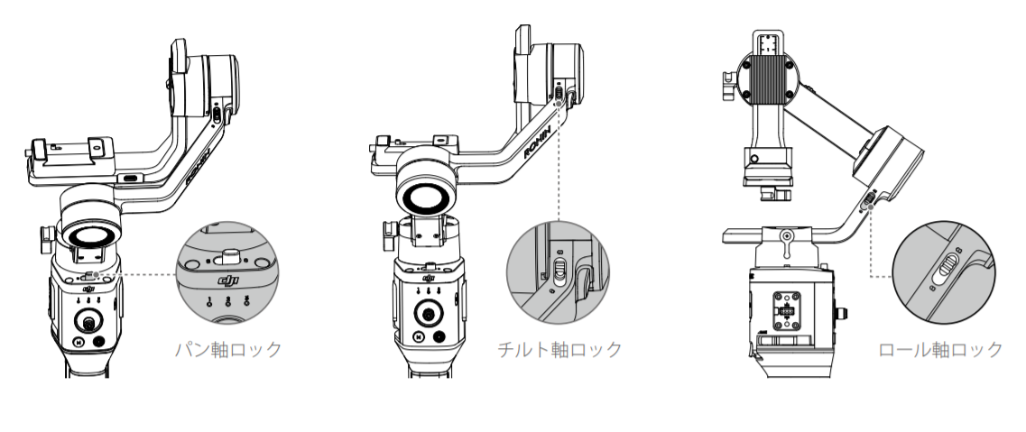 各軸のロックをかけておくことで、カメラの取り付けが簡単になります。