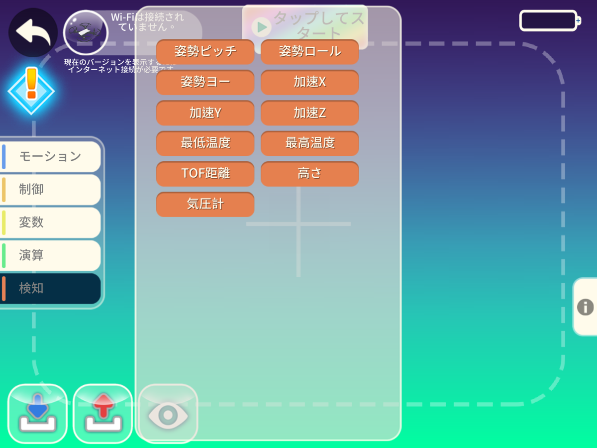 [検知]には、Tello が持っている各種センサー類が変数として用意されています。