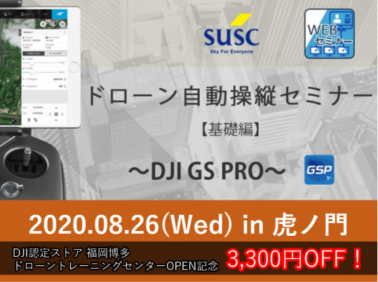 自動操縦アプリ「DJI GS PRO」をオンライン上でマスターできる 「SUSC ドローン自動操縦セミナー 基礎編」を8月26日(水)に開催いたします!