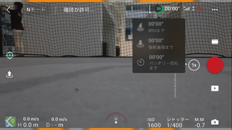 フライト画面右上の「バッテリー残量」が記載されているバッテリーボタンを押すと、低バッテリー残量によるRTH(自動帰還)までのタイムなどが表示されるようになりました。