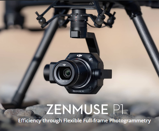 Zenmuse P1は、業務用ドローンのフラッグシップモデル Matrice 300 RTK 用に設計され、地理空間データ収集に特化して設計された航空測量用フルサイズセンサーカメラです。