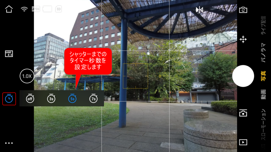 タイマー秒数に余裕があれば、「シャッターボタンを押す → ポーズをとる → 撮影」が叶います。