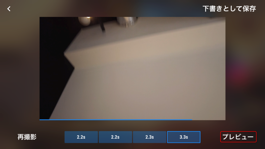 撮影が終わると、カットごとのプレビュー画面に移行します。