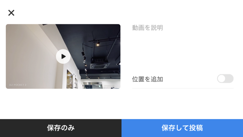 動画を DJI Mimo アプリで共有する場合は「保存して投稿」を、共有せずに保存する場合は「保存のみ」をタップしてください。