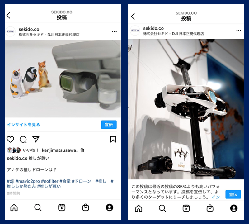 2つの投稿を見比べるて、「どちらがパッと目を引くか?」と聞かれると、右側の「より写真面積が大きな写真」ではないでしょうか?