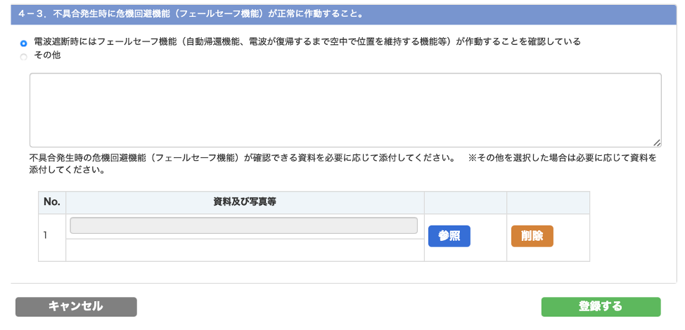 [4. 機体一般~]、[5. 遠隔操作の機体~]