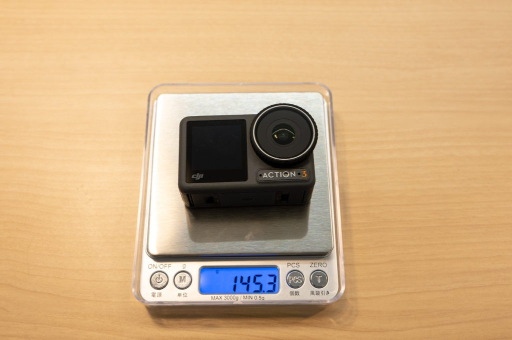 重さをはかってみました。バッテリーを入れた状態で約145gでした。