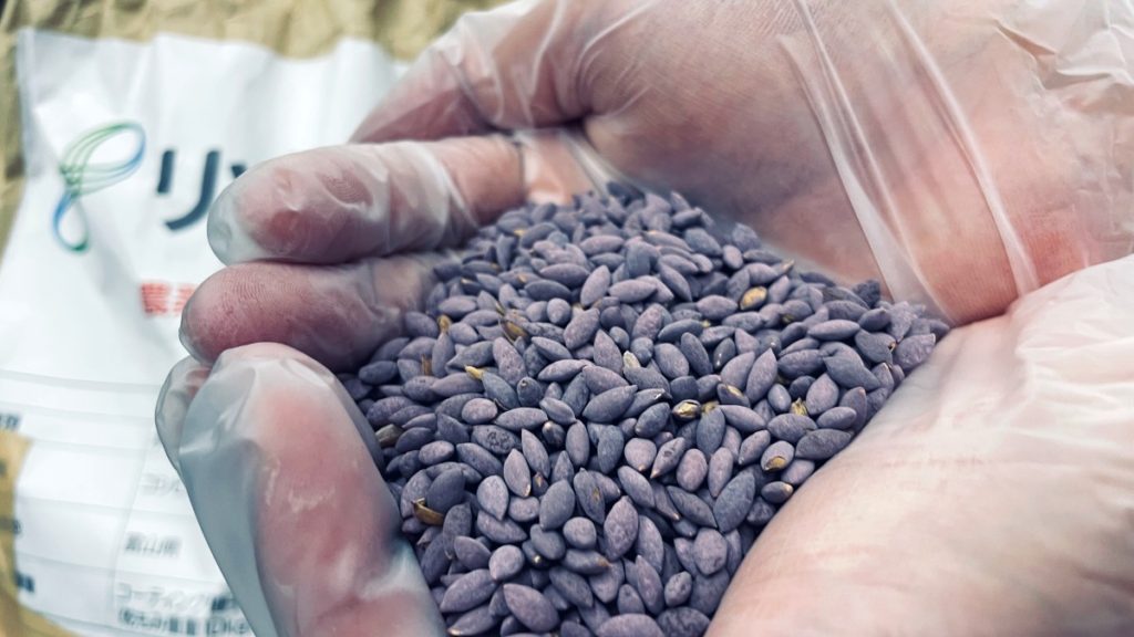 紫色のコーティングが付与された種子「リゾケア®XL」