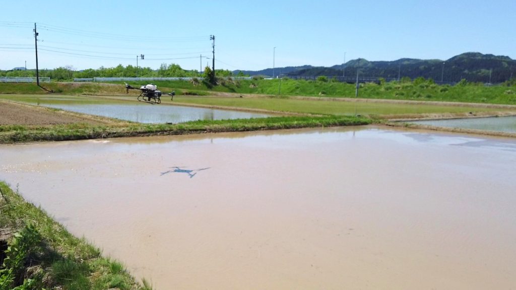 リゾケアがとても優れていて、安心して直播に望めることがわかりました。そして、さらに確実にさらにラクにコストパフォーマンスを上げるため、農業用ドローンのシェアNo. 1で多くの農家さんや散布代行業者が使用する DJI Agras(ディージェイアイ アグラス)シリーズでの播種をぜひオススメしたいのです。
