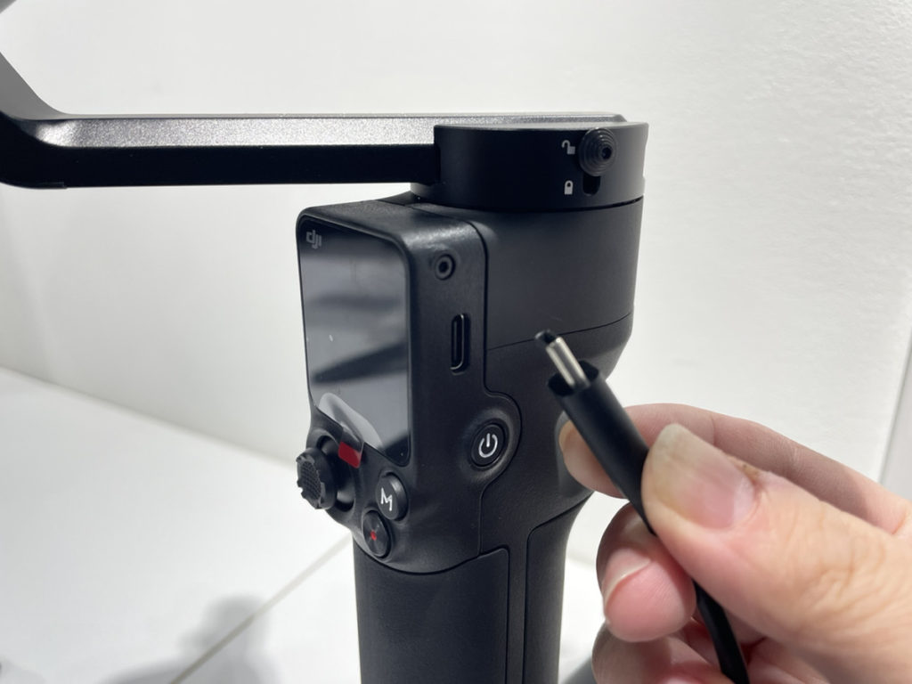 今作では本体とバッテリーグリップが一体型になっているので、充電はディスプレイ横から直接行います。端子の形がType-Cなのも嬉しいですね。