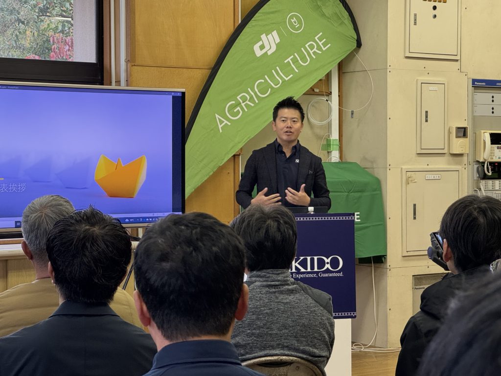 弊社スマート農業チームの糸野が開催を切望していた決起会。セキドとお取引のある代理店様20社とセキドの農業チーム、役員、そしてエンタープライズとコンシューマー事業部からも1名ずつ出席し、セミナーあり、最新の農業用フラッグシップドローン AGRAS T25 のデモフライトありの交流プログラムでした。