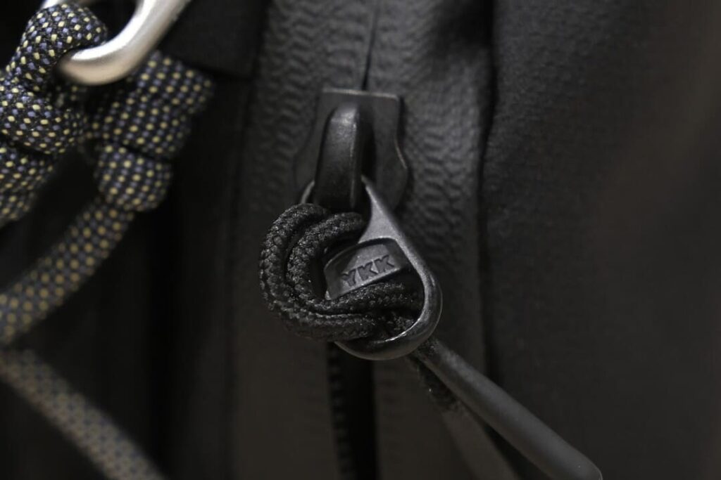 信頼性の高いYKK製止水ファスナーを採用しています。バッグカラーに合わせた色使いもポイントです。