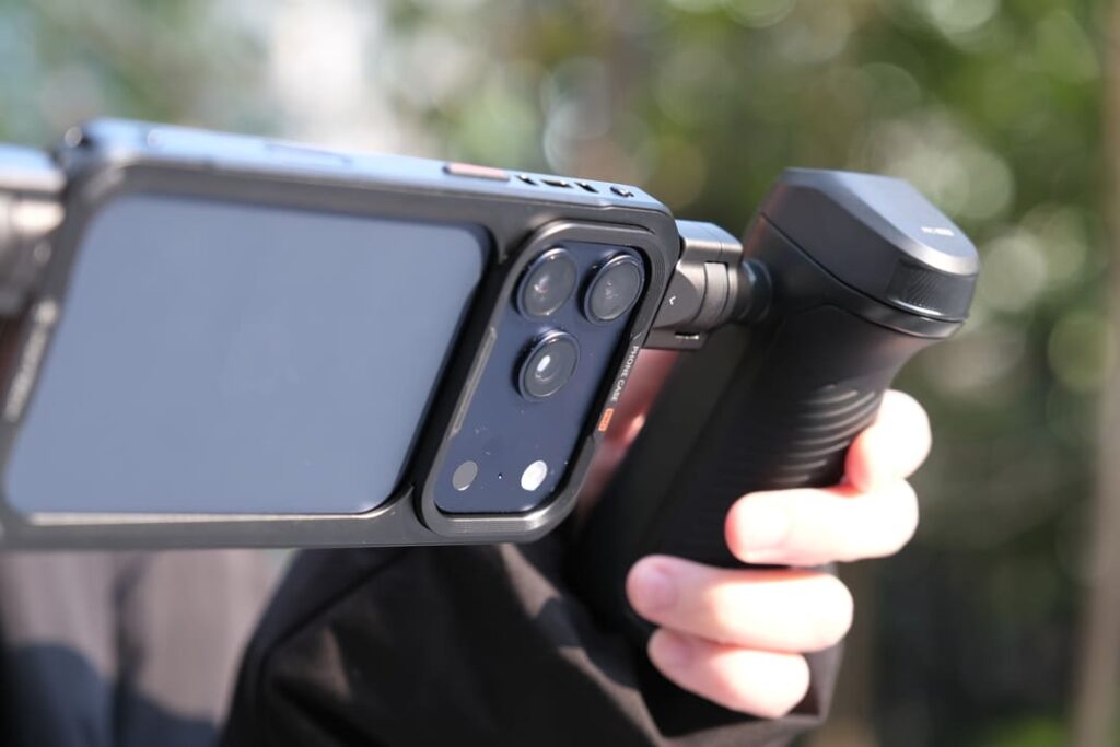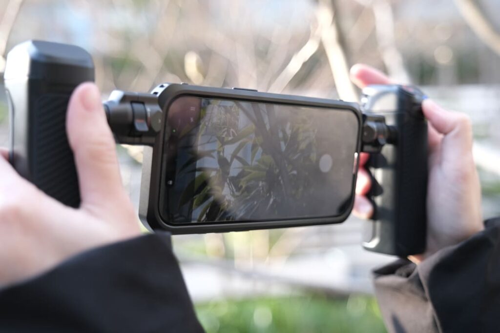 ショットガンマイクやライトなどのアクセサリーもスムーズに取り付けられ、拡張性は十分。スマホ撮影でありながら、プロユースにも対応できる構成が組める点は大きな魅力です。