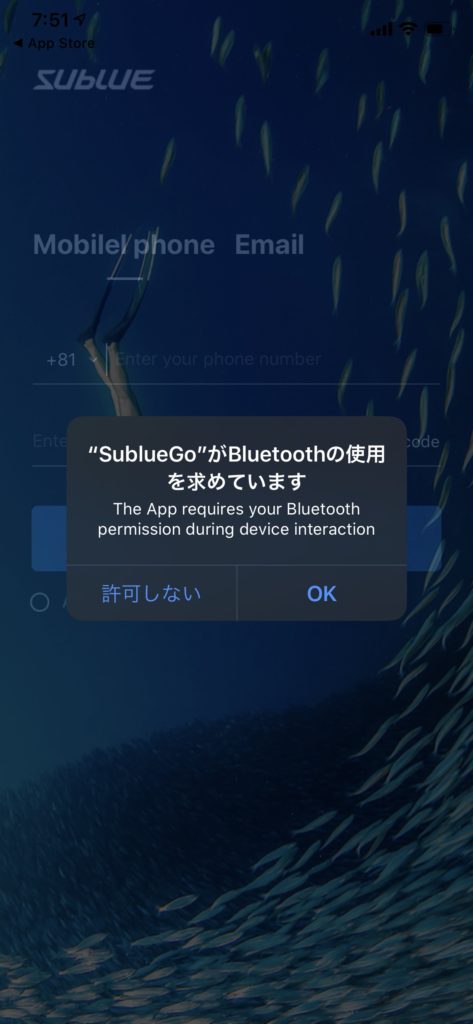 2、アプリを立ち上げて、Bluetoothの使用許可を求められた場合は許可してください。