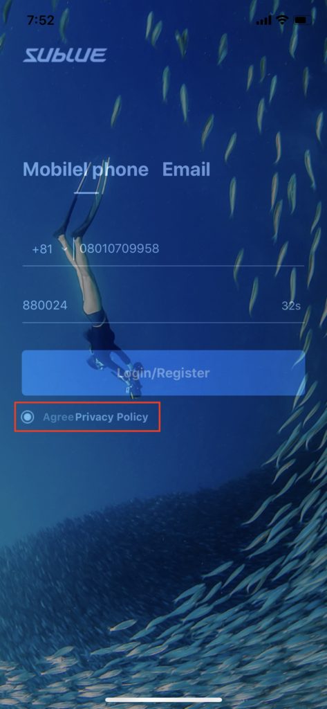 5、ポリシー(AgreePrivacy Policy)の同意にチェックを入れてください。