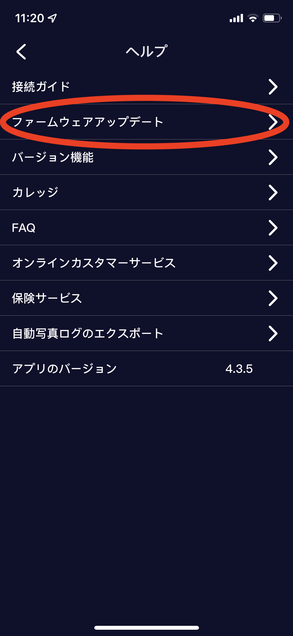 ファームウェアアップデートの有無は以下の手順でご確認ください。