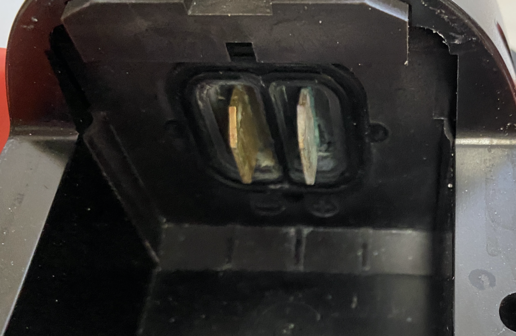 しかしながら、緑青が発生した状態のまま利用し続けると破損の要因となりますため、新た強いバッテリーでのご利用を推奨いたします。(機体側のバッテリー接続端子が綺麗な状態でも、緑青が発生した状態のバッテリーを使うと、本体側のバッテリー端子に錆移りが発生し、本体側も破損いたします。)