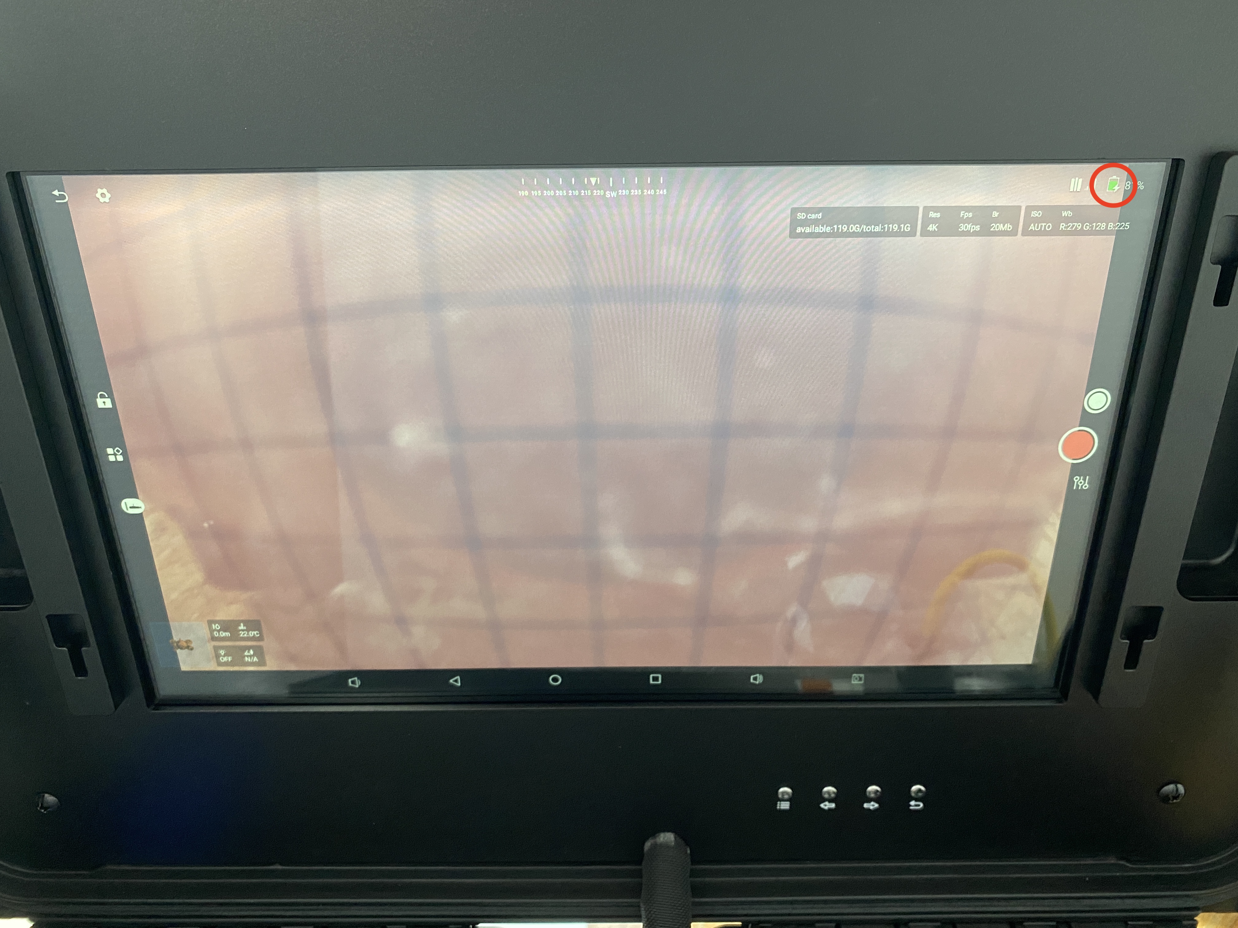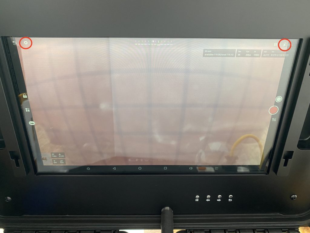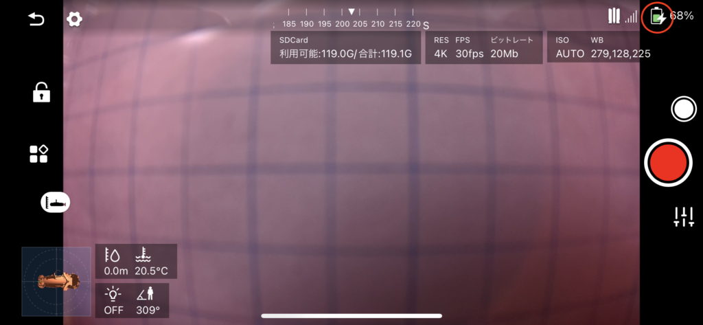 4.パイロット画面に戻り、バッテリー残量表示に「給電マーク(稲妻のようなマーク)」が表示されていると給電がされております。