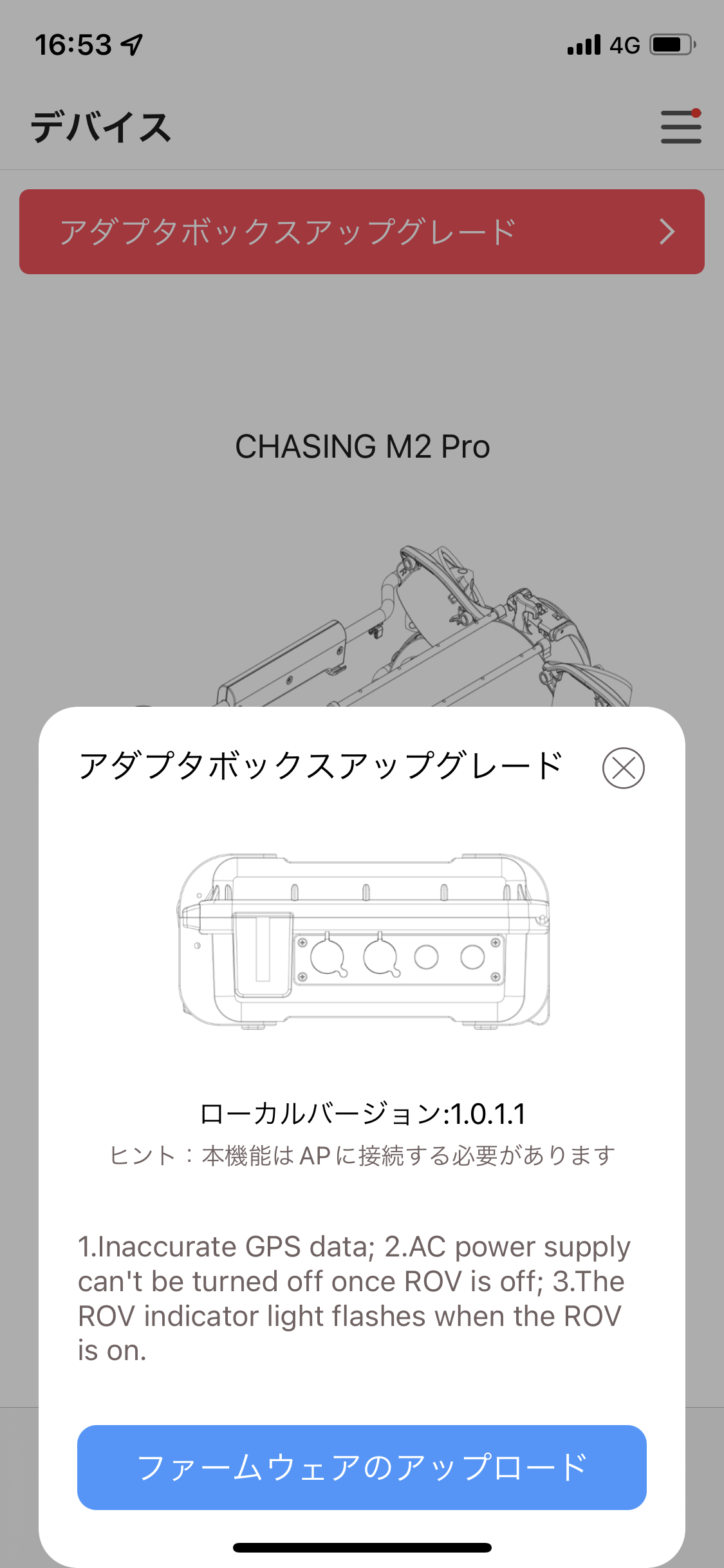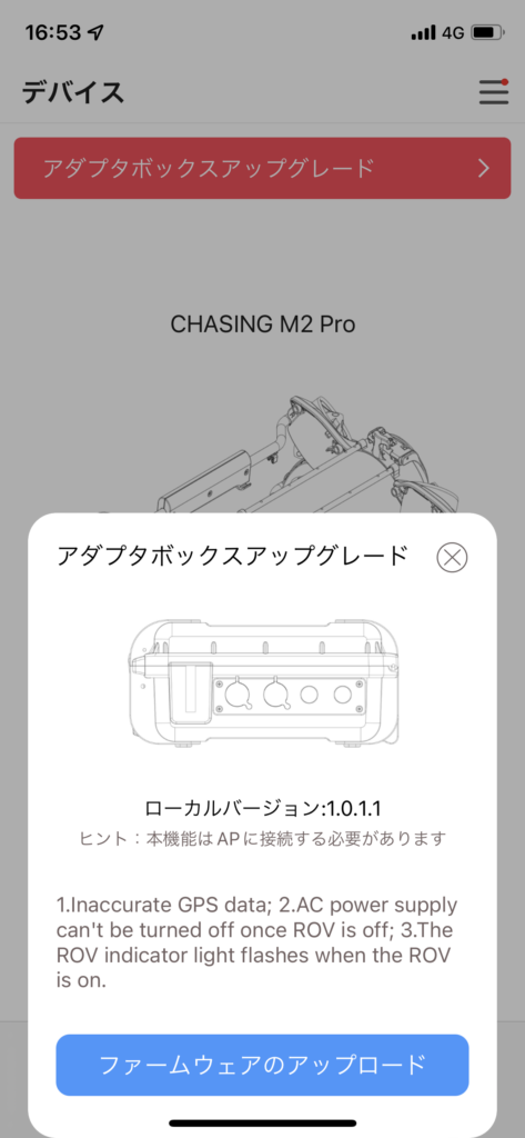 5.アップデート完了後、自動でアダプターボックスが再起動します。アプリを再起動してください。