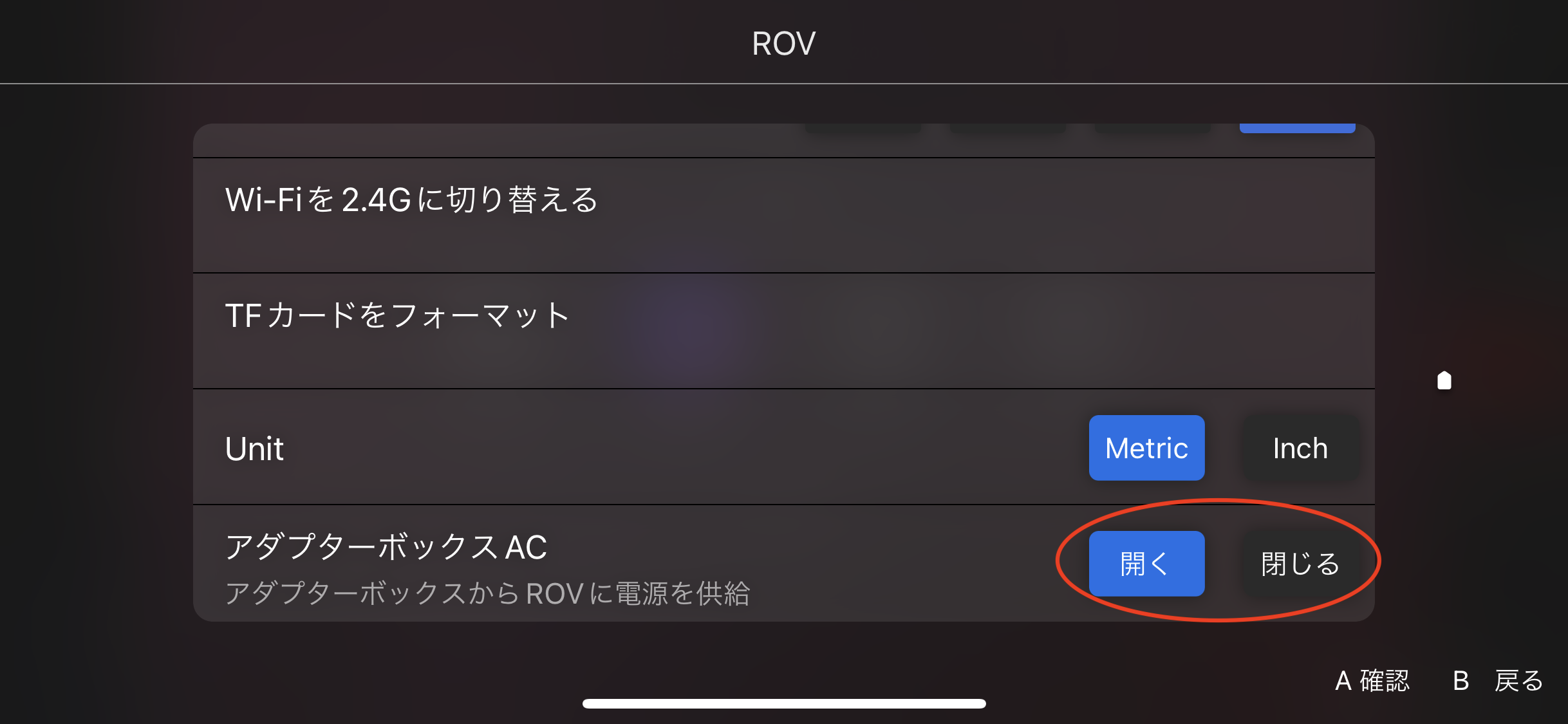 6.設定画面に下記の通り「アダプターボックスAC」の項目が追加されます。(アダプターボックスの電源がONの時のみ)