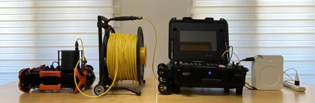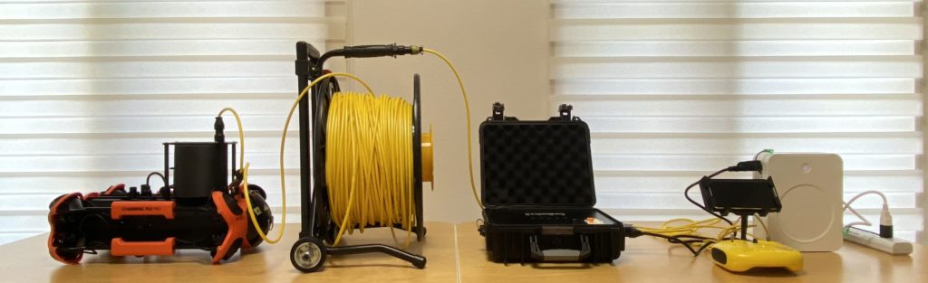 ※「コントロールコンソール」「アダプターボックス」「テザーリール」は水面から2m以上離れた位置において濡れないように保持してください。