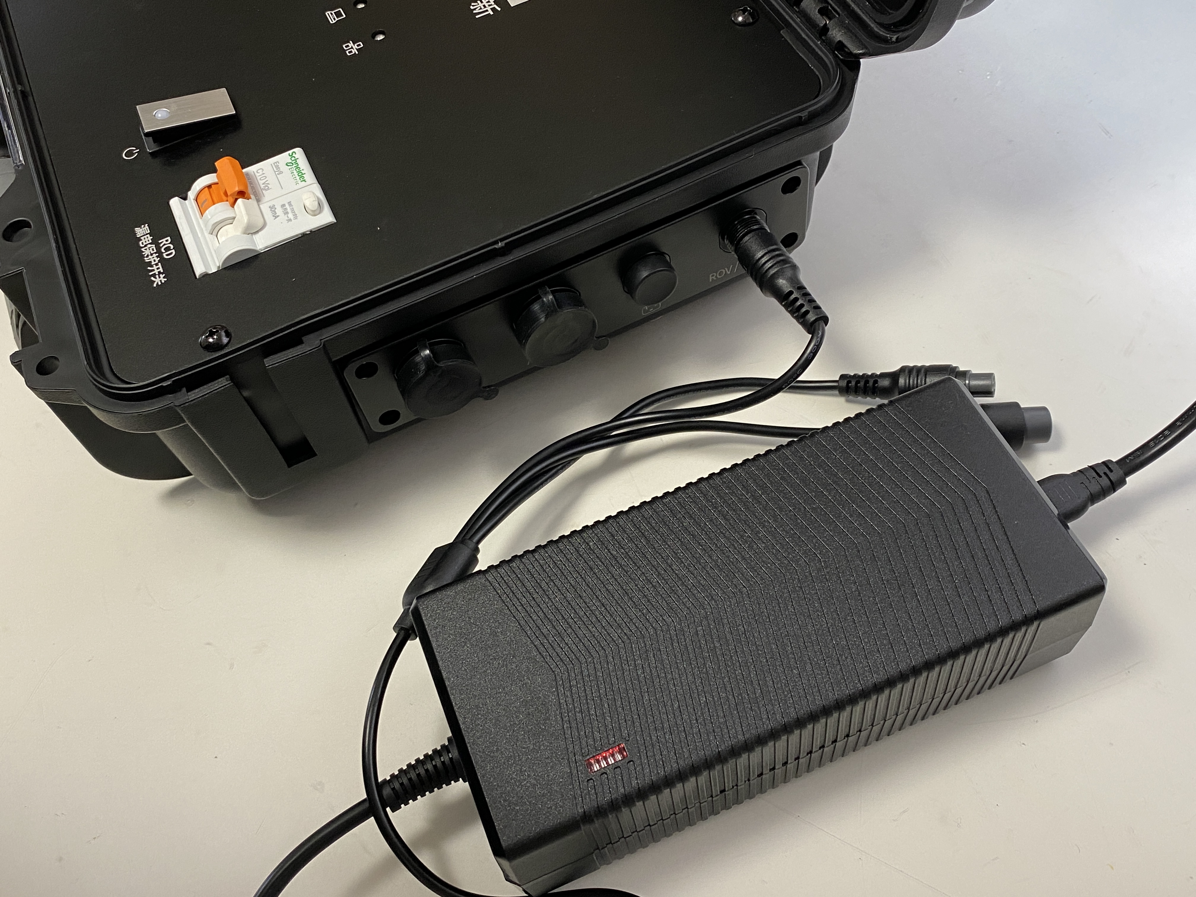 A1.CHASING M2 PRO本体に付属の充電器をご利用いただき、マニュアル記載の「充電ポート」より充電をしてください。下記写真をご参照ください。