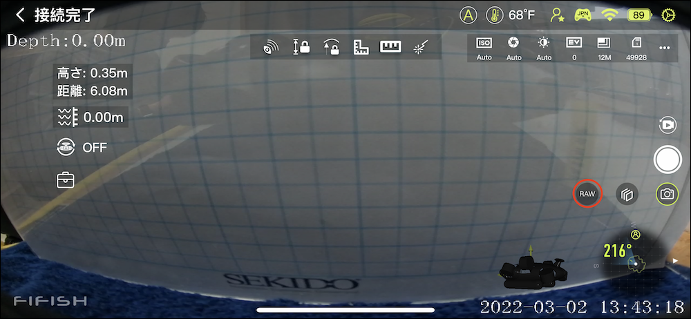 QYSEA FIFISH Vシリーズ 写真のRAW撮影の設定方法 RAWファイル形式の一つである「DNG」撮影が可能となります。撮影設定方法は下記をご確認ください。 【 RAW撮影 設定方法 】 1.パイロット画面で「カメラマーク」をクリック 2.「RAW」をクリック 3.設定完了です ※当記事の無断での複製、改編、転載、二次利用などは一切禁じます。 ※記載内容は公開時点での仕様に基づいています。バージョンアップなどにより記載内容と異なる場合があります。 ※記載事項は予告なく変更となる場合があります。 QYSEA Q&Aの一覧に戻る SHARE POST LINEで送る DJI PGYTECH HOBBYWING AERO-D外付型リモートID CHASING QYSEA SUBLUE WAYDOO Unitreeユニツリー FJDynamics SAVOX SUNPADOW Firmware Updateファームウェア OTHERSその他 Q&A / 技術的なご質問 内検索:
