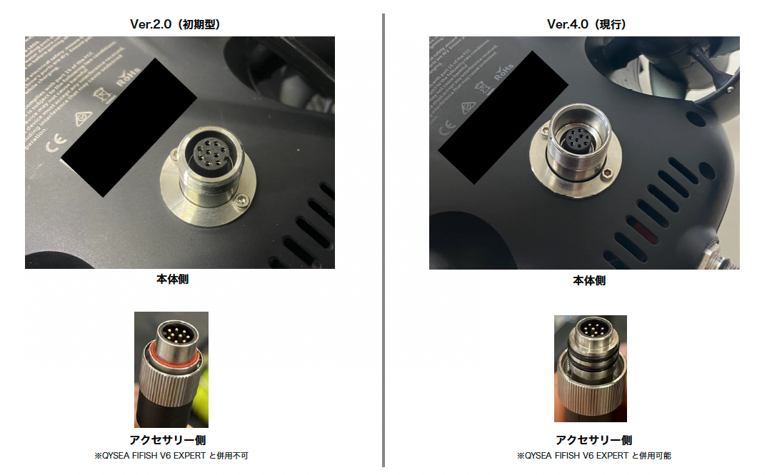 QYSEA FIFISH V6 PLUS アクセサリー接続端子 生産ロットによる形状違い