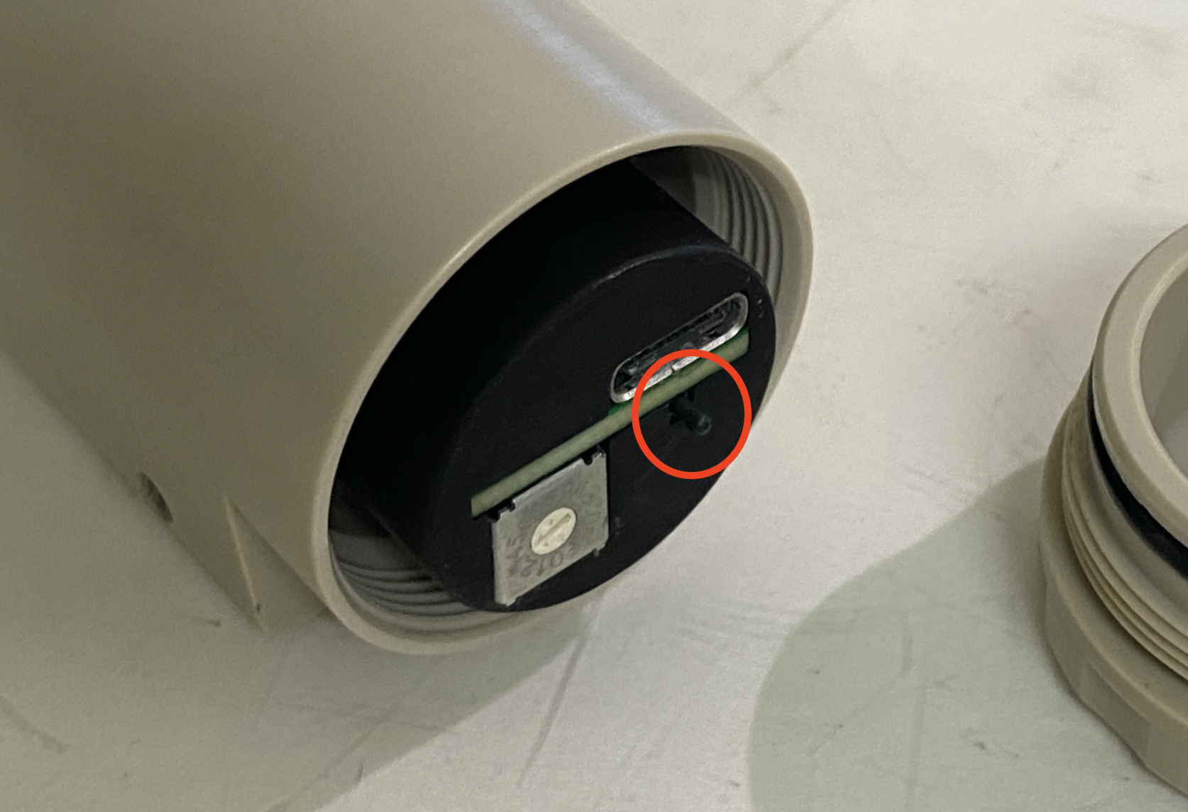 A5.キャップ内にスイッチがあります。キャップを閉めていただくことで電源がONになります。キャップはしっかりと最後までしまっていることを確認してください。なお、キャップの締めが甘いと、内部に水が入り破損の原因となります。浸水した場合の破損は有償交換・有償修理対応となりますのでご注意ください。