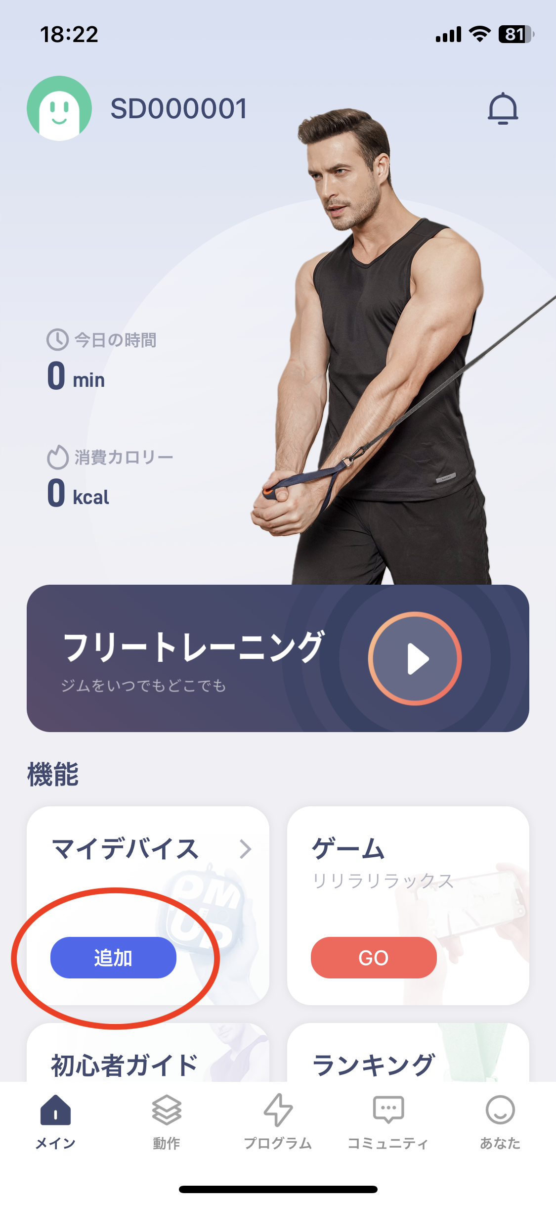 8.Fitness Pump APPの「デバイスを追加」をクリック