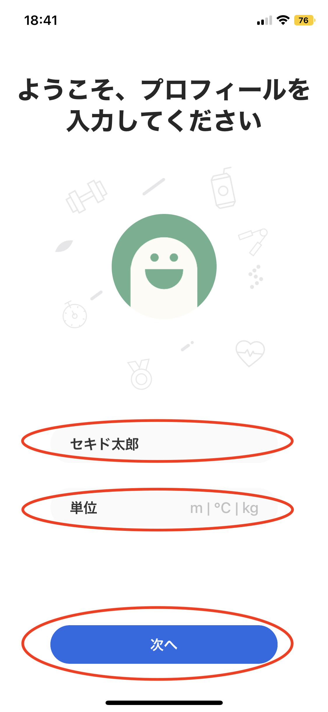 ※こちらでは例として「ユーザー名:セキド太郎」「単位:m/°C/kg」にて入力しています。