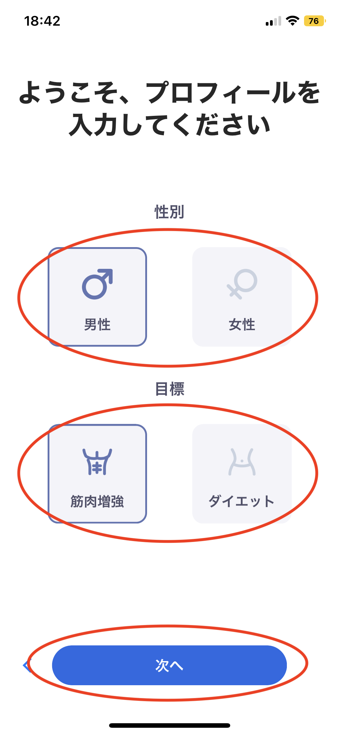 1.Fitness Pump APPを起動して「メールアドレスで新規登録」をクリック