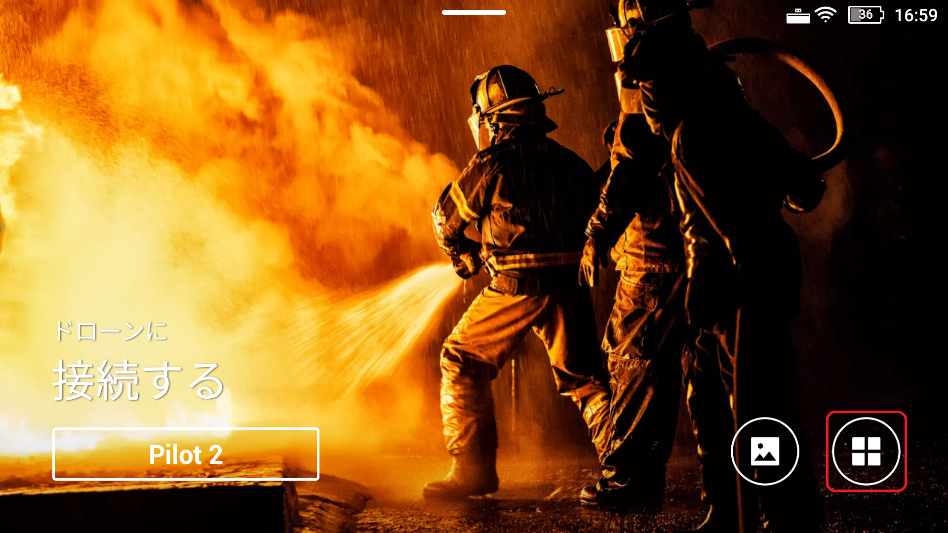 1.送信機を起動し、初期画面の右下にあるアイコンをタップします