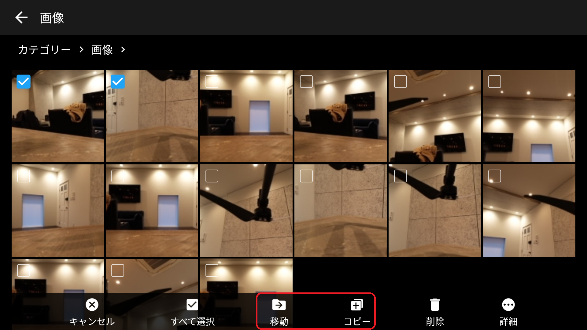5.移動もしくはコピーしたい画像を選択し、下部の「移動」または「コピー」をタップします