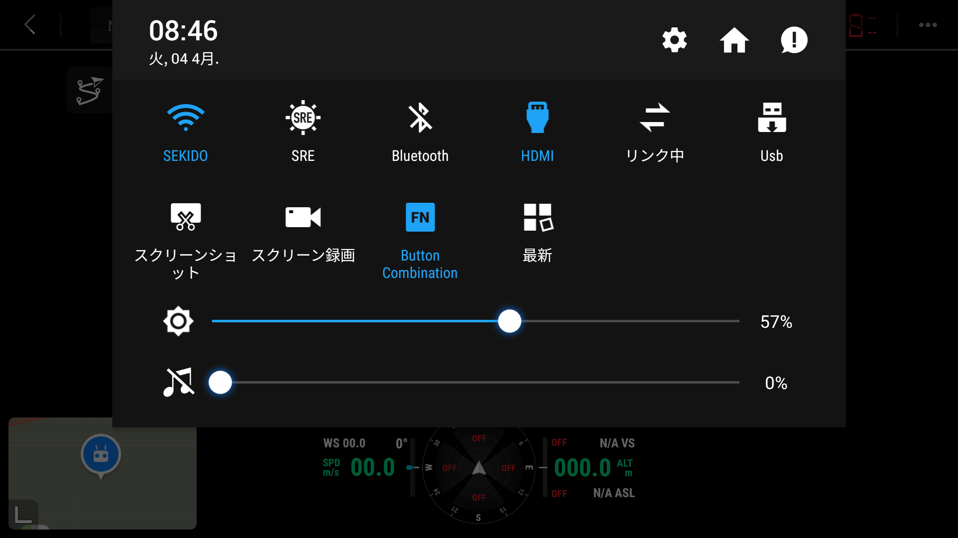 次に画面を上から下に向かってスワイプし「設定画面」より「HDMI」がオンになっているか
