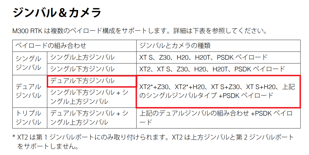 DJI Matrice 300 RTK 下向きデュアルジンバルコネクターはどのカメラに対応しますか