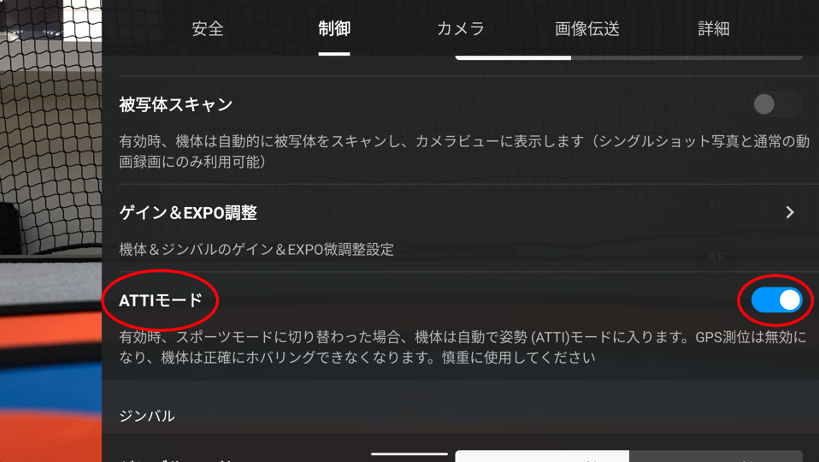 1.パイロット画面の「制御」の項目に「ATTIモード」が追加されます。
